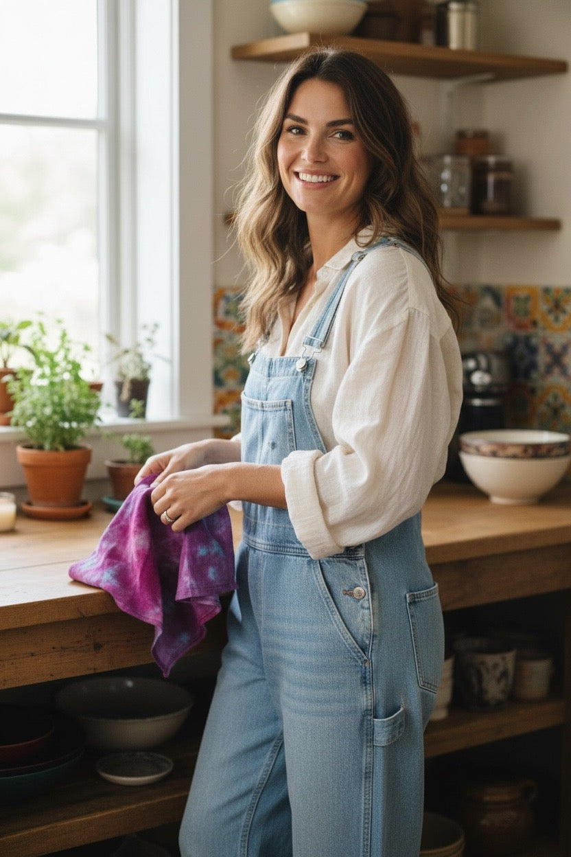 Brighten up any space with these hand-made tie-died tea towels. With its unique style and vibrant colors, it's a perfect way to make any room feel special. Perfect for yourself, or as a special gift, these tea towels will bring joy to whoever uses them.